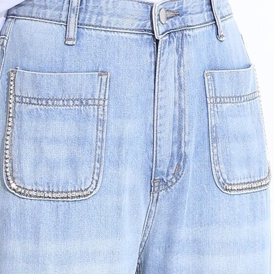 ボトムス パンツ デニムパンツ ロング丈 ストレート ワイド ファスナー ポケット ハイウエスト ブルーデニム シンプル カジュアル おしゃれ 大人女子 ラフ ガーリー ルーズ 抜け感 無地 春 夏 秋 2022 10代 20代 30代 レディース ママ デート お出かけ 公園デビュー 休日 アウトドア 旅行 着回し 普段使い 韓国系 ファッション 楽ちん 脚長 新作 定番 フリーサイズ 色展開 ライトブルー