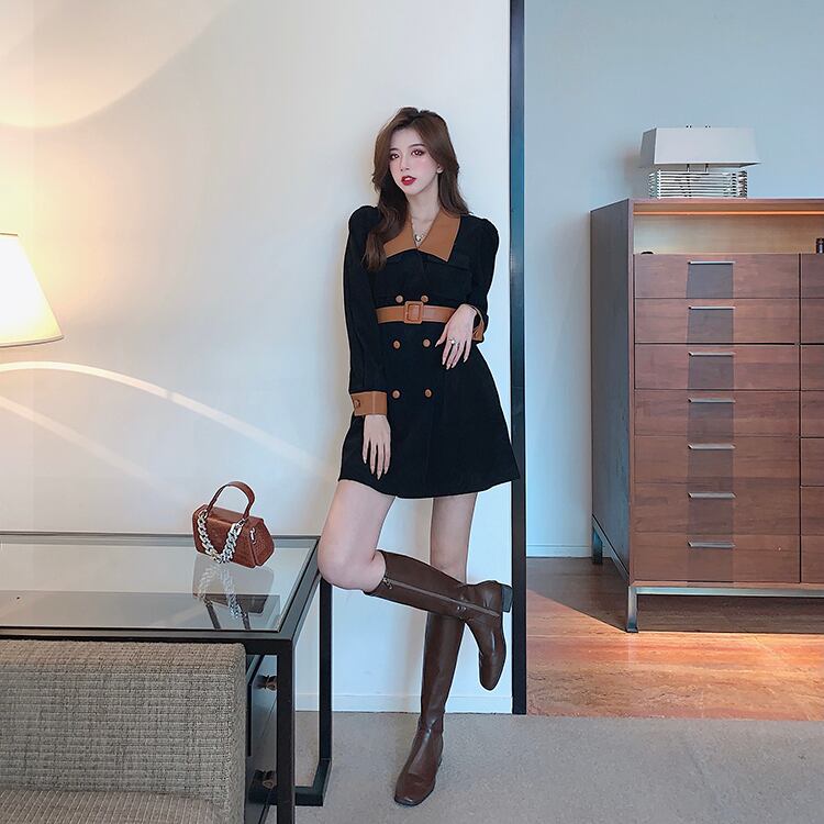 韓国アイドルのような、色っぽくて女性らしい雰囲気になれるワンピースです。ダブルブレストデザインは、ロングブーツやヒールシューズと相性がぴったり。デートや記念日、特別な日におすすめですよ。