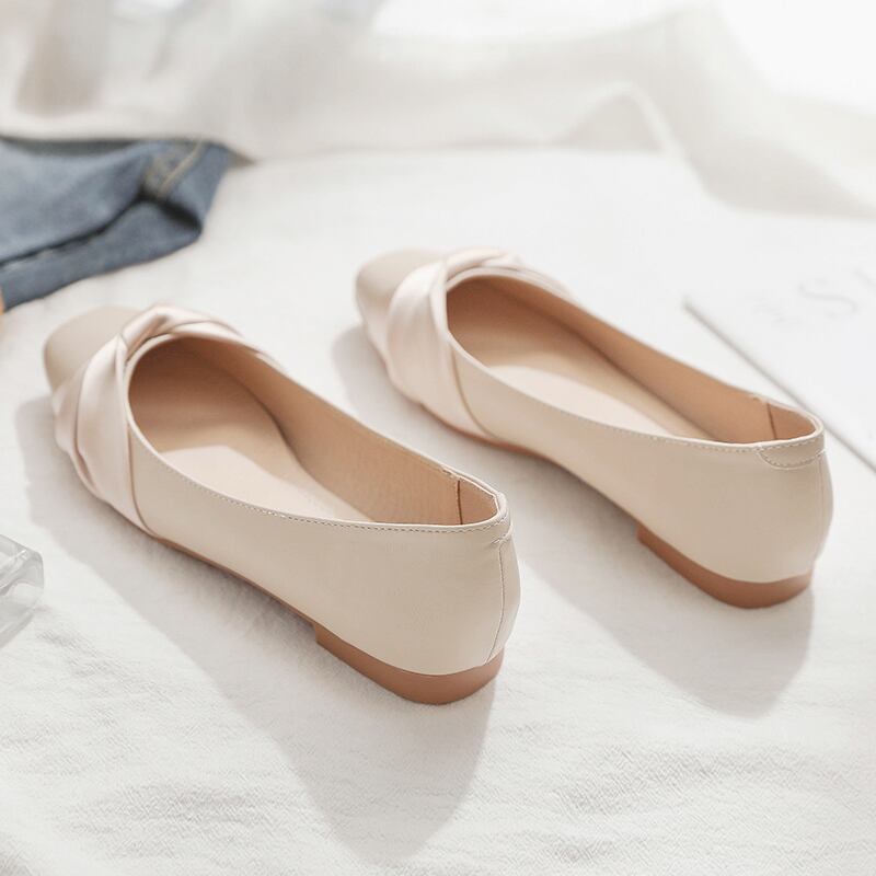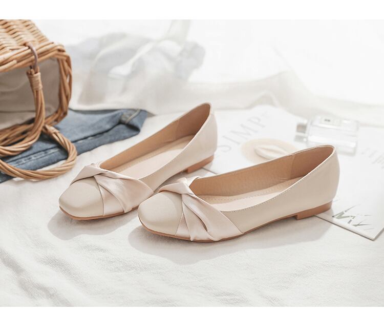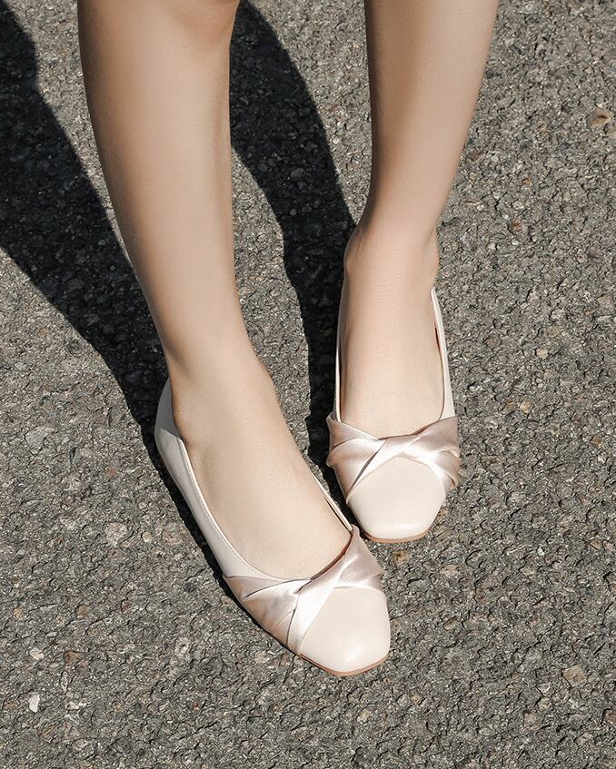 春らしいカラーのフラットシューズ。