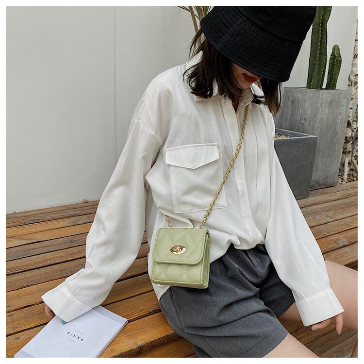 華奢なチェーンショルダーで斜め掛けもでき、スタイリングのアクセントにぴったりなアイテムです。