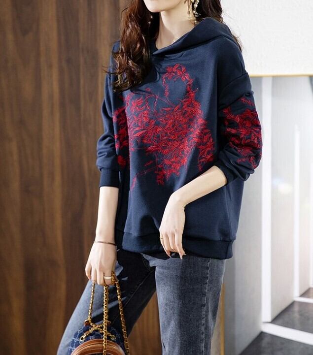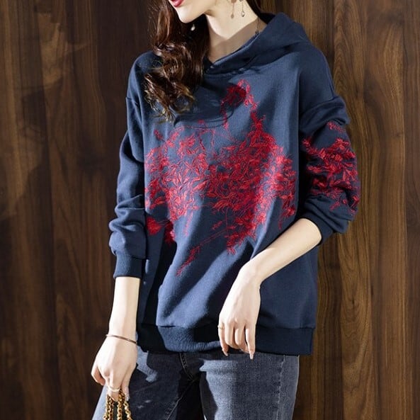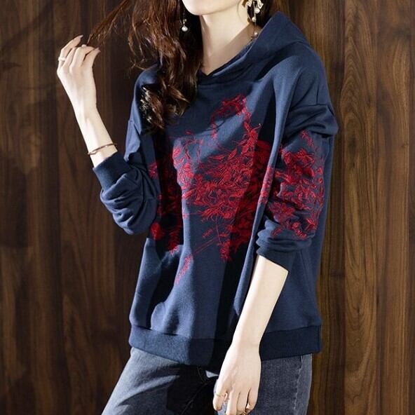 トップス パーカー ミディアム丈 袖あり 長袖 襟付き フード付き ストレート 大人可愛い カジュアル おしゃれ かっこいい 大人女子 ラフ ルーズ クール 存在感 柄 プリント 秋 冬 20代 30代 40代 レディース ママ デート お出かけ 公園デビュー 休日 旅行 着回し 普段使い 楽ちん 体系カバー 新作 ゆる サイズ展開豊富 色展開 ネイビー