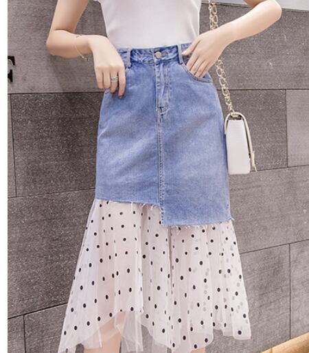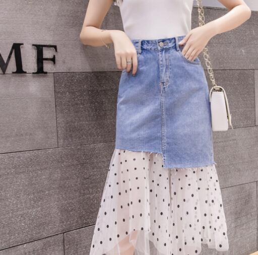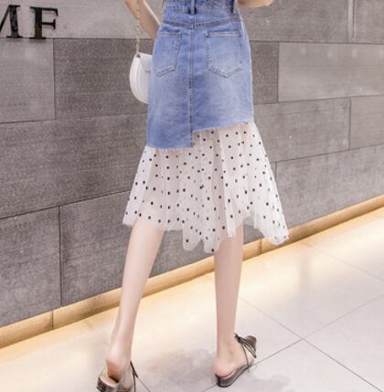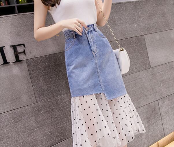 デニム×ドットシフォンスカート スカート ボトムス ミモレ丈 マーメイド シフォン デニム 爽やか 大人スタイル かわいい 大人可愛い きれいめ シンプル カジュアル 大人 上品 おしゃれ かっこいい レトロ アジアン 大人可愛い 大人女子 ラブリー キュート ガーリー 無地 柄 ドット柄 春 夏 10代 20代 30代 40代 50代 レディース ママ 女の子 通勤 学生 通学 デート お出かけ 女子会 ホテル ガーデン 着回し コーデ スタイル モテ S M L XL 2XL 大きめ 青 ブルー