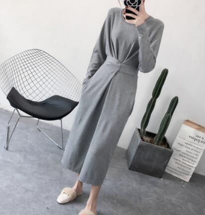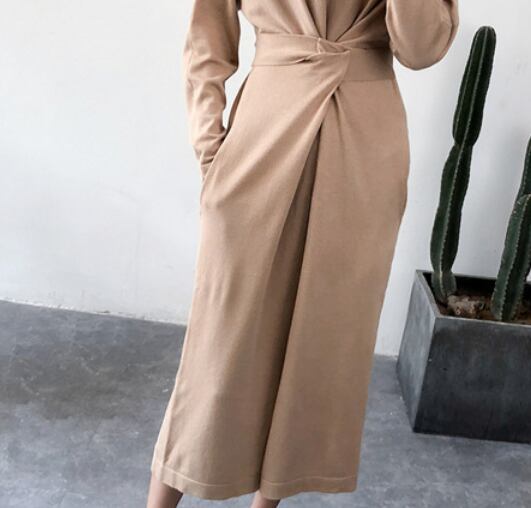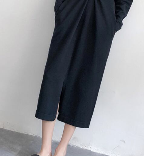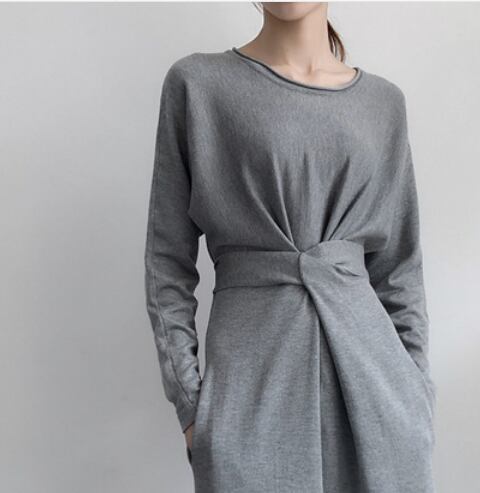 シンプルな無地のカットソーロングワンピースです。