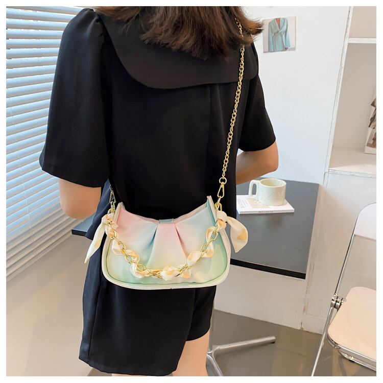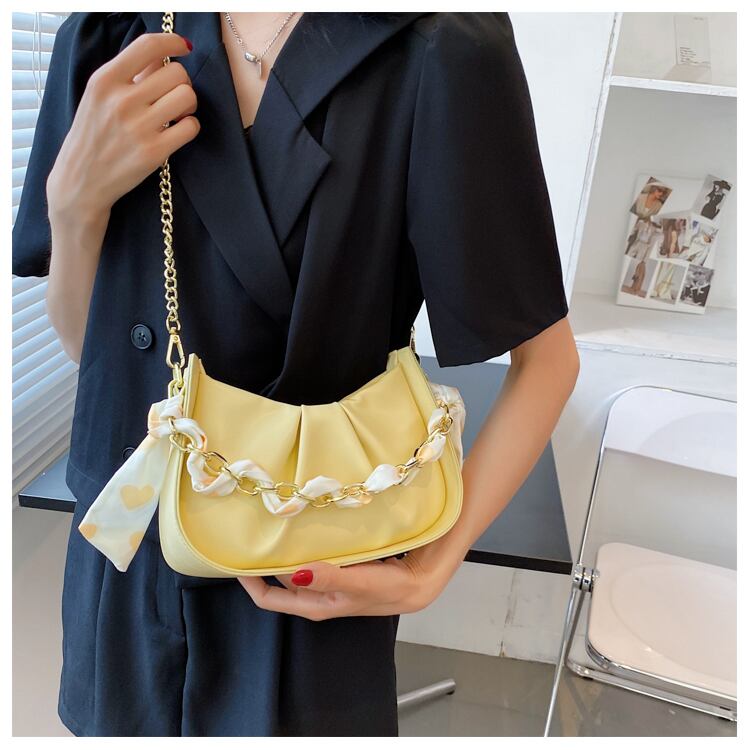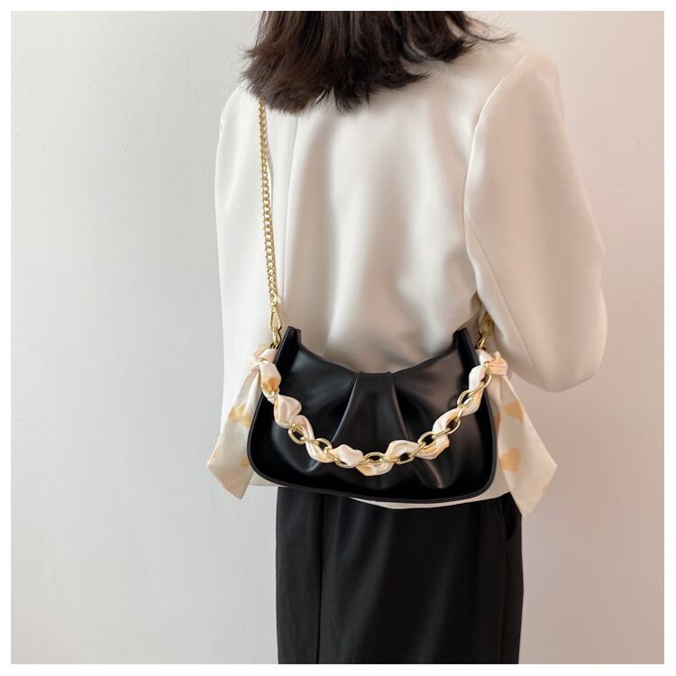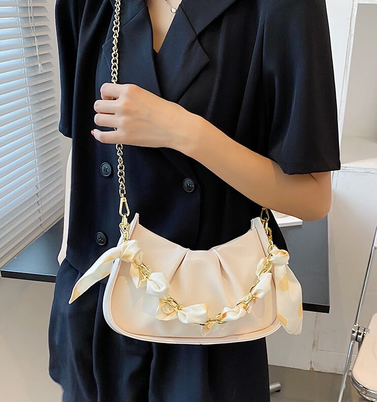 優しいカーブを描いた三日月シェイプで可愛らしく、ぷっくり素材にギャザーが寄ったトレンド感も取り入れたデザインのショルダーバッグ。