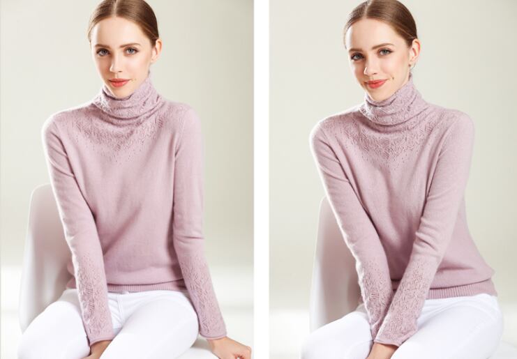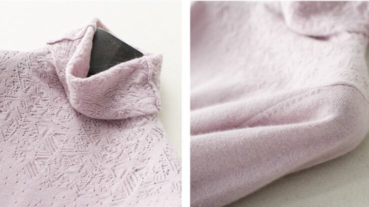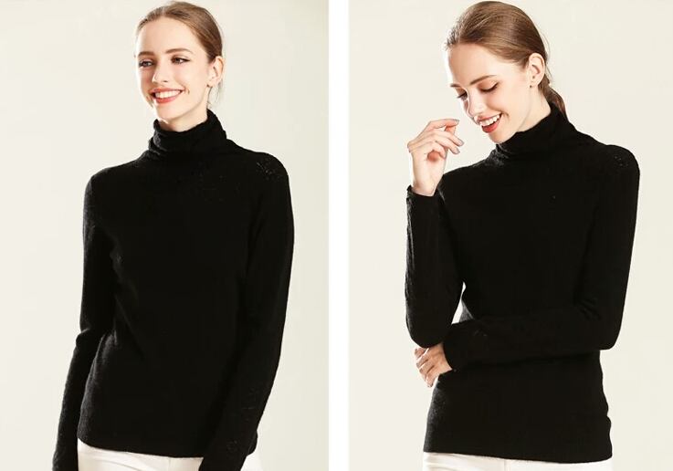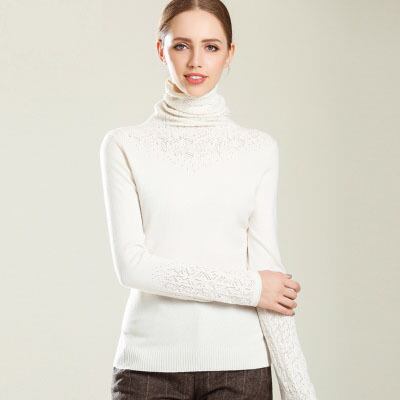 大人の女性にぴったりの高級感のあるハイネックニット。