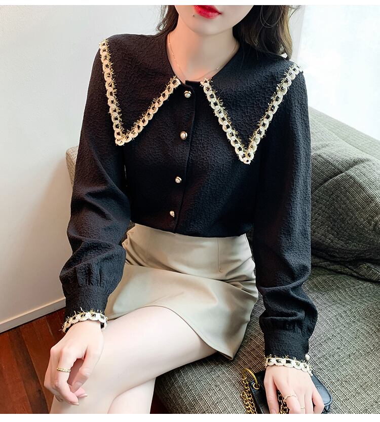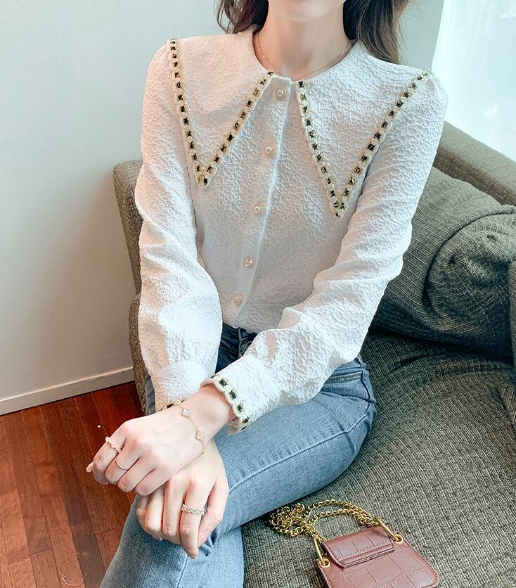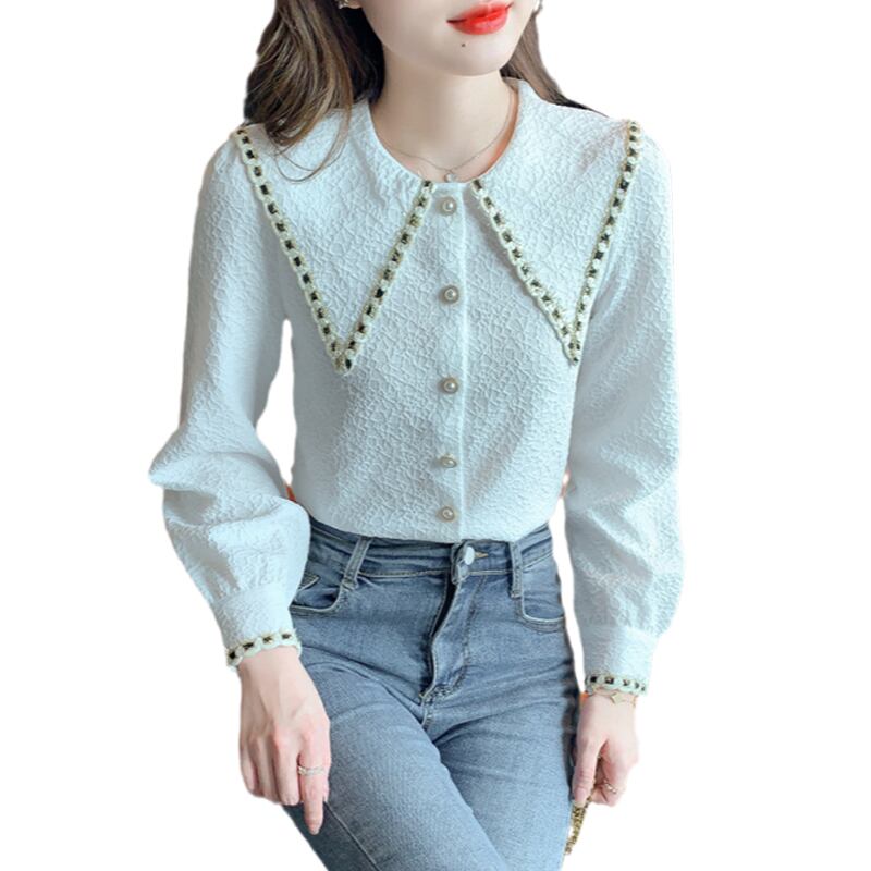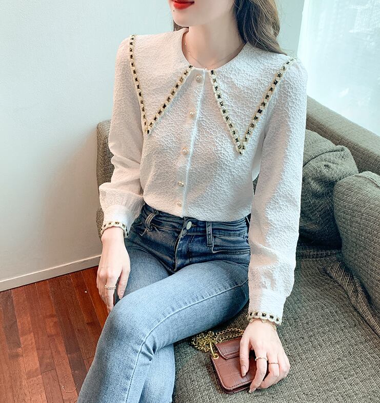 ビックカラーブラウス トップス シャツ ブラウス 袖あり 長袖 襟付き 前開き かわいい 大人可愛い きれいめ シンプル カジュアル 大人 上品 おしゃれ お洒落 大人可愛い 大人女子 こなれ感 ラフ ラブリー キュート ガーリー 個性的 モダン 主役級 存在感 無地 春 秋 冬 10代 20代 30代 レディース OL 通勤 学生 通学 デート お出かけ 女子会 休日 着回し 普段使い 重ね着 韓国系 オルチャン サイズ S M L XL 2XL 色展開 白 ホワイト