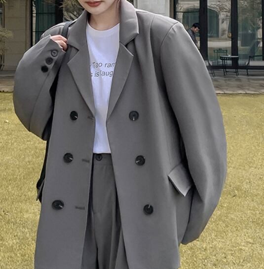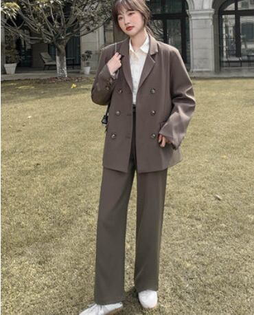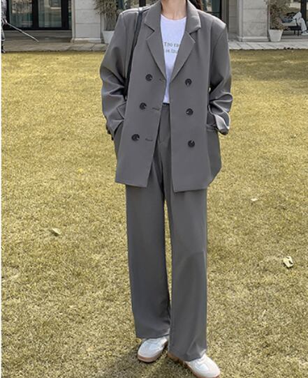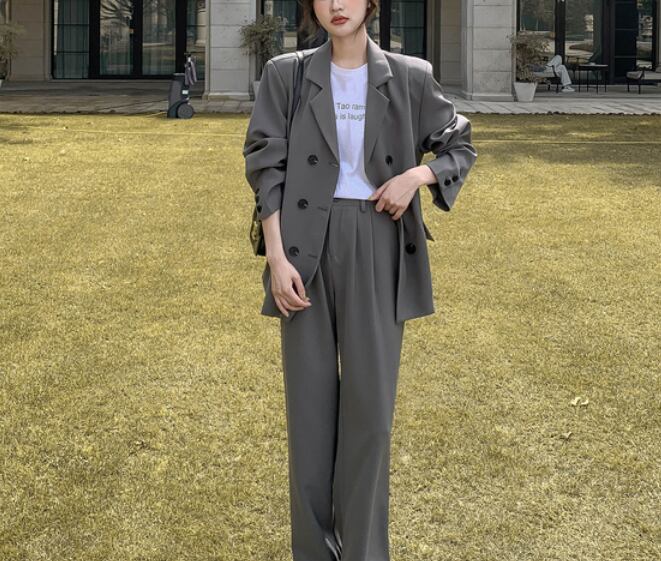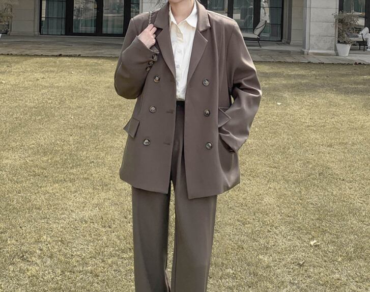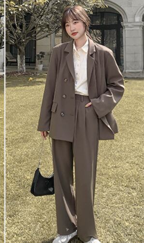 長袖ジャケットとワイドストレートパンツのスーツセットです。