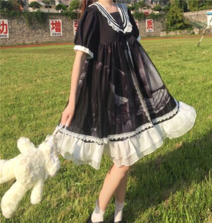 フリルが目立つ半袖ワンピースです。