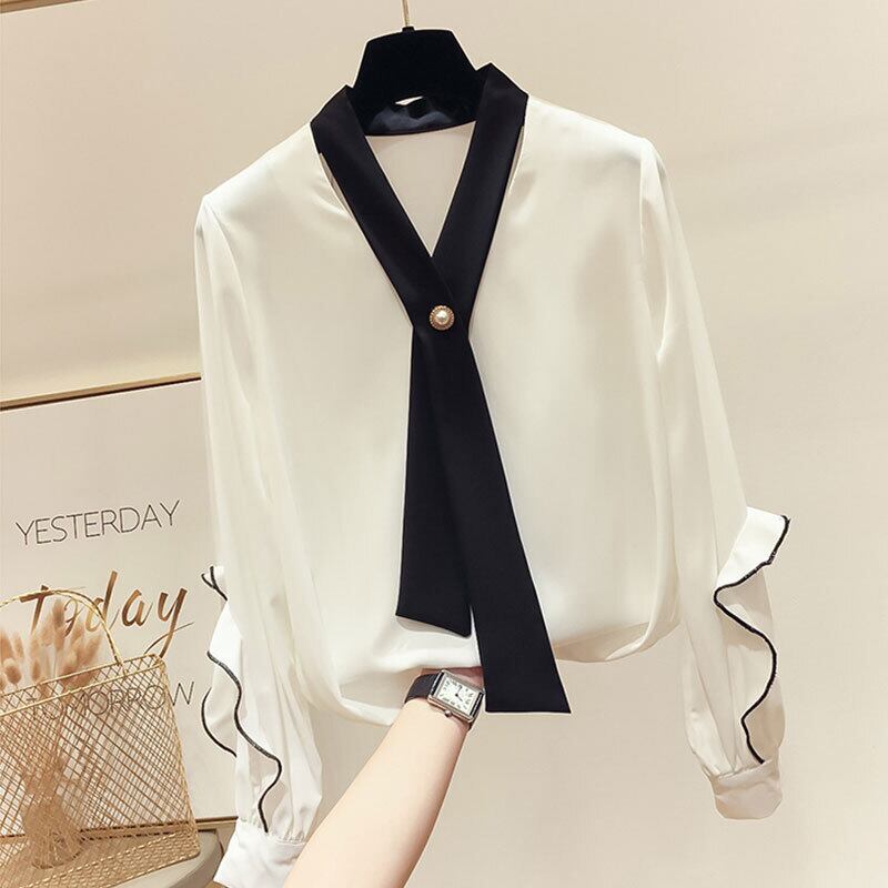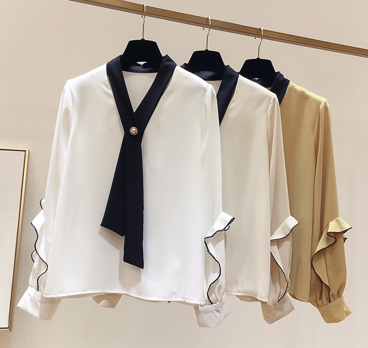 シフォンブラウス トップス シャツ ブラウス 袖あり 長袖 Vネック シフォン フリル かわいい 大人可愛い きれいめ シンプル カジュアル 大人 上品 おしゃれ お洒落 大人可愛い 大人女子 こなれ感 ラフ ラブリー キュート ガーリー 個性的 モダン 主役級 存在感 無地 春 秋 10代 20代 30代 レディース OL 通勤 学生 通学 デート お出かけ 女子会 休日 着回し 普段使い 重ね着 韓国系 オルチャン サイズ S M L XL 色展開 白 ホワイト 黄色