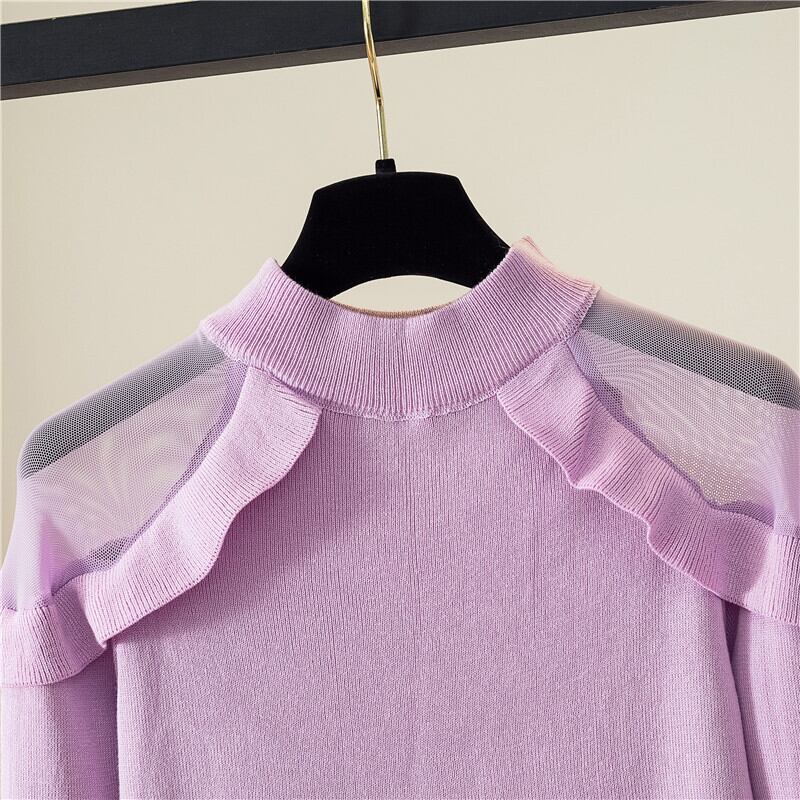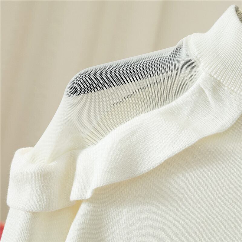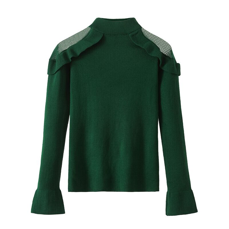 フリルニット トップス ニットソー セーター 袖あり 長袖 ハイネック フリル かわいい 大人可愛い きれいめ シンプル カジュアル 大人 上品 おしゃれ お洒落 大人可愛い 大人女子 こなれ感 ラフ ラブリー キュート ガーリー 個性的 モダン 主役級 存在感 無地 春 秋 10代 20代 30代 レディース OL 通勤 学生 通学 デート お出かけ 女子会 休日 着回し 普段使い 重ね着 韓国系 オルチャン 色展開 白 ホワイト 黒 ブラック 緑 グリーン 紫 パープル