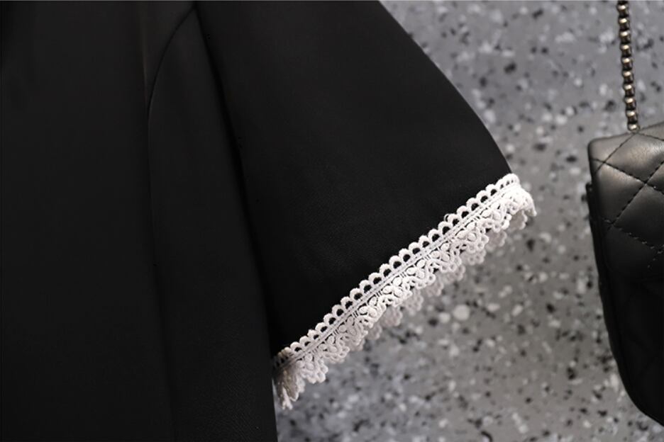 襟と袖口のレースがアクセントの半袖ワンピース。
