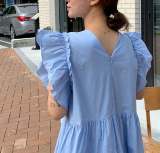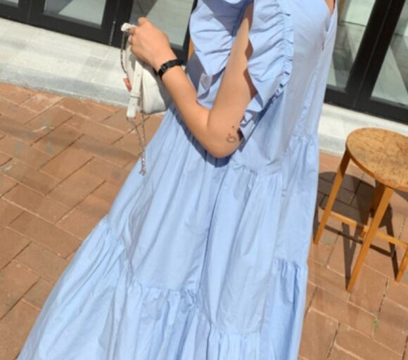 爽やかフリル半袖ロングワンピース ワンピース ロング丈 袖あり 半袖 Aライン フリル 綿 爽やか 大人スタイル かわいい 大人可愛い きれいめ シンプル カジュアル 大人 上品 おしゃれ かっこいい レトロ 大人可愛い キュート 主役級 存在感 無地 春 夏 10代 20代 30代 40代 50代 レディース ママ 女の子 学生 通学 デート お出かけ 女子会 イベント 着回し 普段使い ファッション コーデ スタイル 楽ちん モテ プレゼント ギフト インスタ映え フリーサイズ 大きめ ゆったり