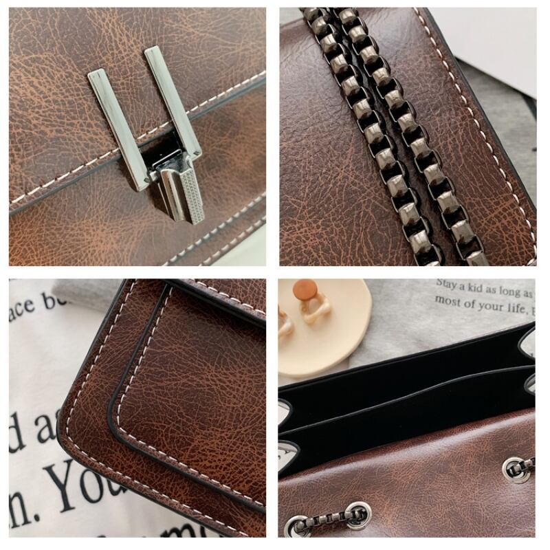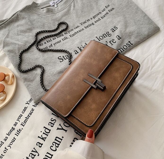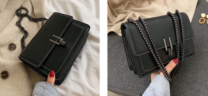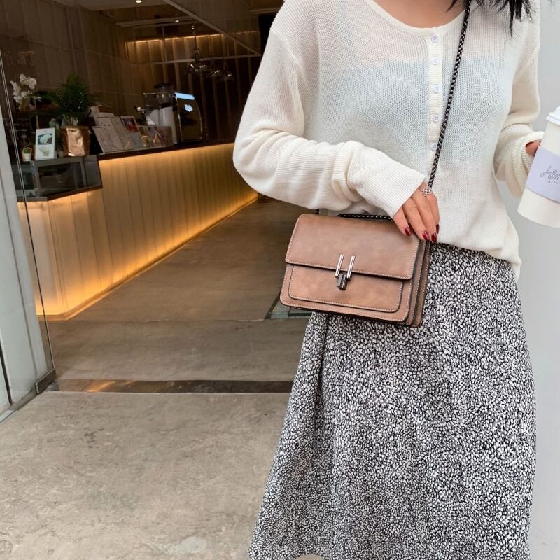 艶感のある素材とチェーンが高見えするショルダーバッグ。