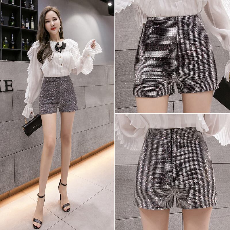 ボトムス パンツ ショート丈 ストレート ファスナー ハイウエスト スパンコール きらきら 大人可愛い きれいめ おしゃれ かっこいい 大人女子 ラブリー クール セクシー エレガント 主役級 無地 春 秋 2022 10代 20代 30代 レディース デート お出かけ 休日 パーティー イベント 着回し 普段使い モテ 美脚 脚長 新作 インスタ映え サイズ S M L 色展開 シルバーグレー