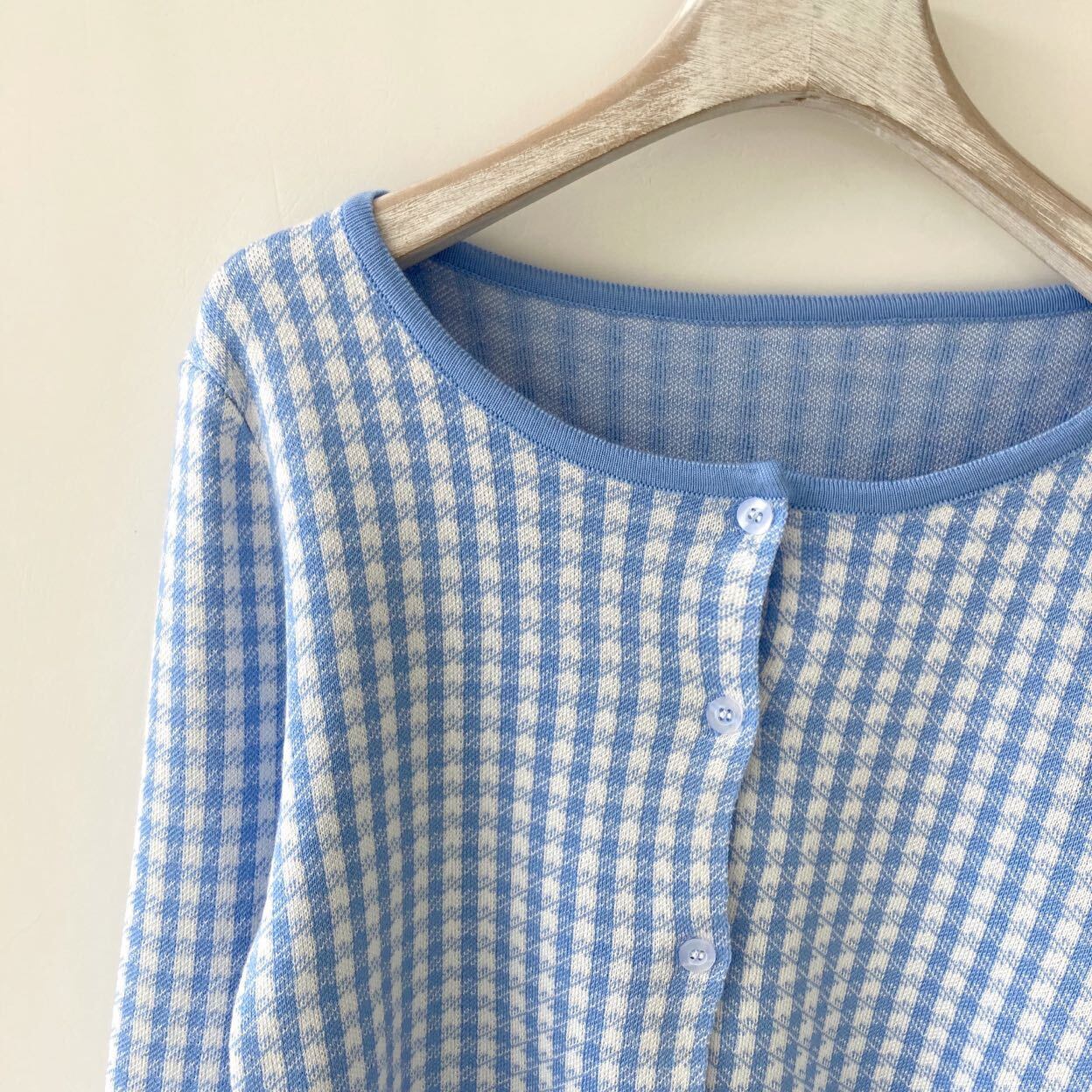 ギンガムチェック柄ニットカーディガン トップス カーディガン 袖あり 長袖 ラウンドネック 前開き かわいい 大人可愛い きれいめ シンプル カジュアル 大人 上品 おしゃれ お洒落 大人可愛い 大人女子 こなれ感 ラフ ラブリー キュート ガーリー 個性的 モダン 主役級 存在感 柄 チェック柄 春 秋 10代 20代 30代 レディース OL 通勤 学生 通学 デート お出かけ 女子会 休日 着回し 普段使い 重ね着 韓国系 オルチャン 色展開 青 ブルー 黄色 イエロー