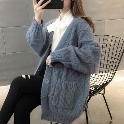 大人きれいにさらっと羽織りたいケーブル編みのニットカーディガン。