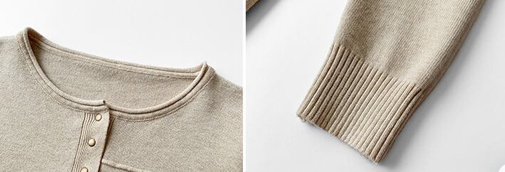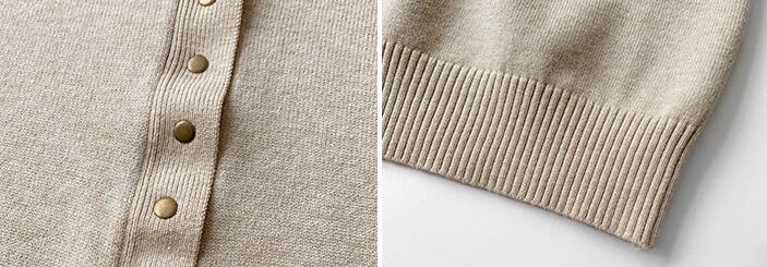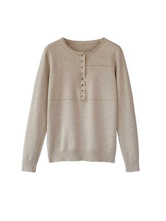 ヘンリーネックがこなれカジュアルな印象を演出するニットプルオーバー。