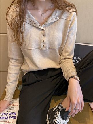 vヘンリーネックニット トップス ニットソー セーター 袖あり 長袖 ヘンリーネック かわいい 大人可愛い きれいめ シンプル カジュアル 大人 上品 おしゃれ お洒落 大人可愛い 大人女子 こなれ感 ラフ ラブリー キュート ガーリー 個性的 モダン 主役級 存在感 抜け感 無地 春 秋 冬 10代 20代 30代 レディース OL 通勤 学生 通学 デート お出かけ 女子会 休日 着回し 普段使い 重ね着 韓国系 オルチャン サイズ M L XL 2XL 3XL 4XL 色展開 白