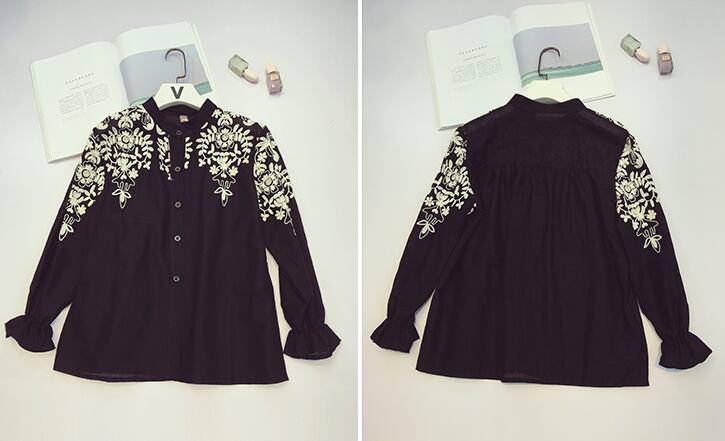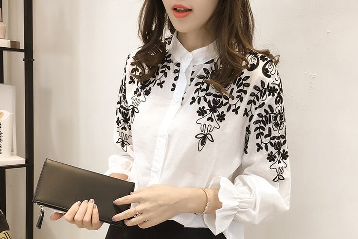 一目惚れの刺繍柄シャツブラウス。