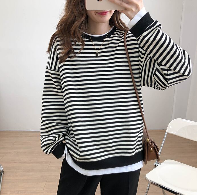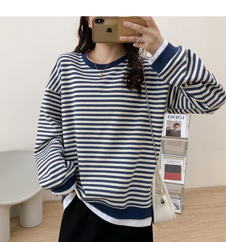 ボーダーレイヤード風トップス トップス プルオーバー トレーナー 袖あり 長袖 ラウンドネック ドッキング ドッキング リブ 綿 かわいい 大人可愛い きれいめ シンプル カジュアル 大人 上品 おしゃれ お洒落 大人可愛い 大人女子 こなれ感 ラフ ラブリー キュート ガーリー 個性的 モダン 主役級 存在感 とろみ感 抜け感 柄 ボーダー 春 秋 10代 20代 30代 レディース 学生 通学 デート お出かけ 女子会 休日 着回し 普段使い 重ね着 韓国系 オルチャン ブラック ブルー オレンジ
