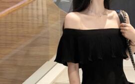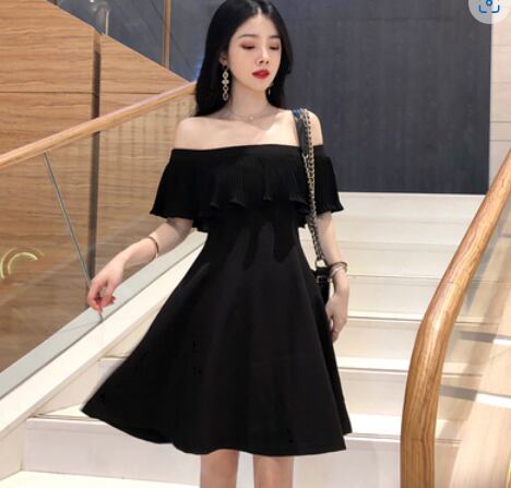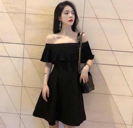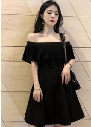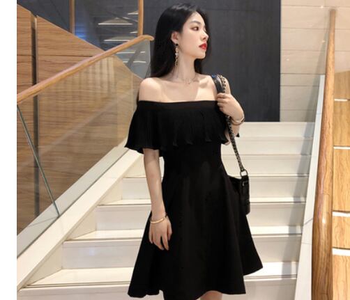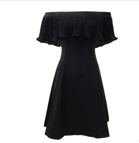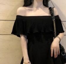 大人っぽいオフショルダーの膝丈ワンピースです。