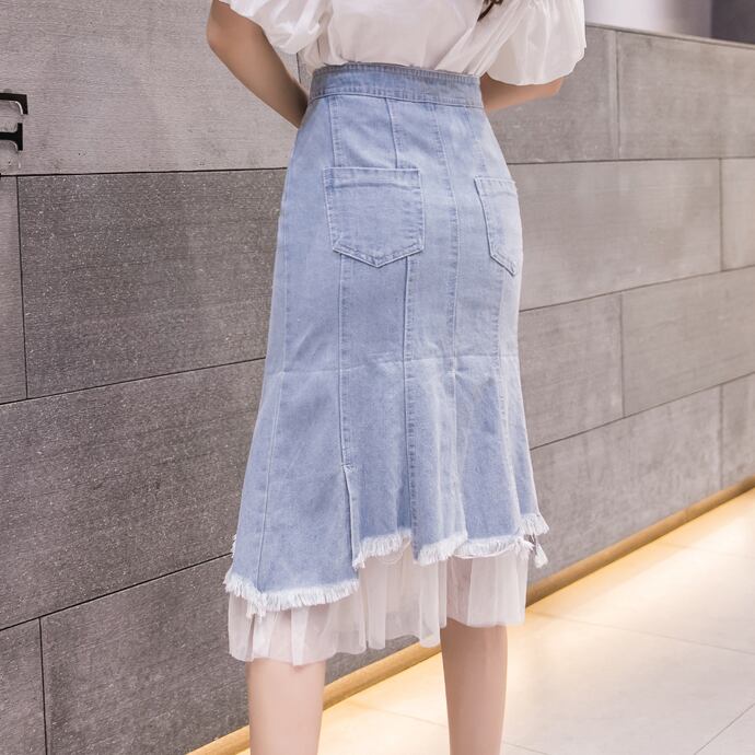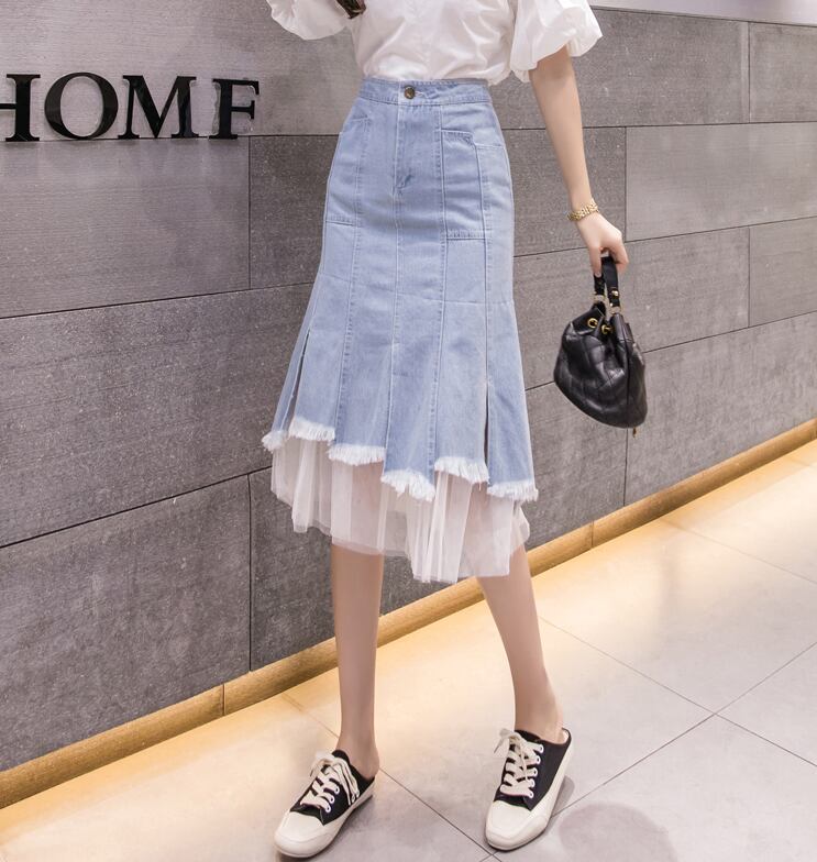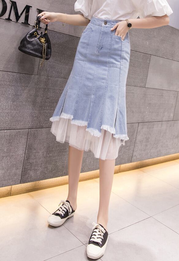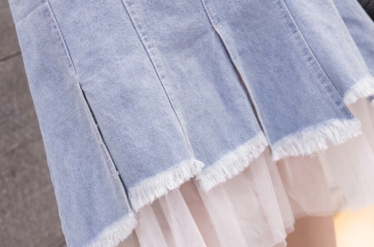 チュールドッキングデニムスカート スカート ボトムス デニムスカート 膝丈 ひざ丈 フレア チュール ハイウエスト 綿 デニム かわいい 大人可愛い きれいめ シンプル カジュアル 大人 上品 おしゃれ お洒落 大人可愛い 大人女子 こなれ感 ラフ ラブリー キュート ガーリー モダン 主役級 存在感 とろみ感 抜け感 無地 春 夏 秋 10代 20代 30代 レディース 学生 通学 デート お出かけ 女子会 休日 着回し 普段使い 韓国系 オルチャン サイズ S M L XL 2XL 3XL 4XL