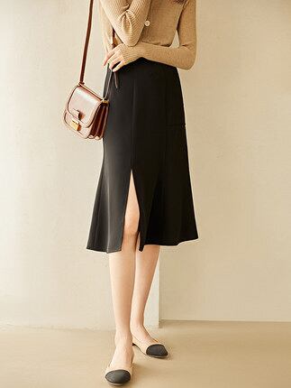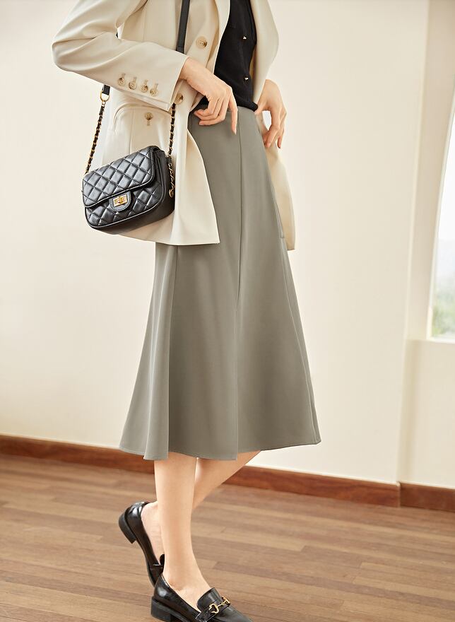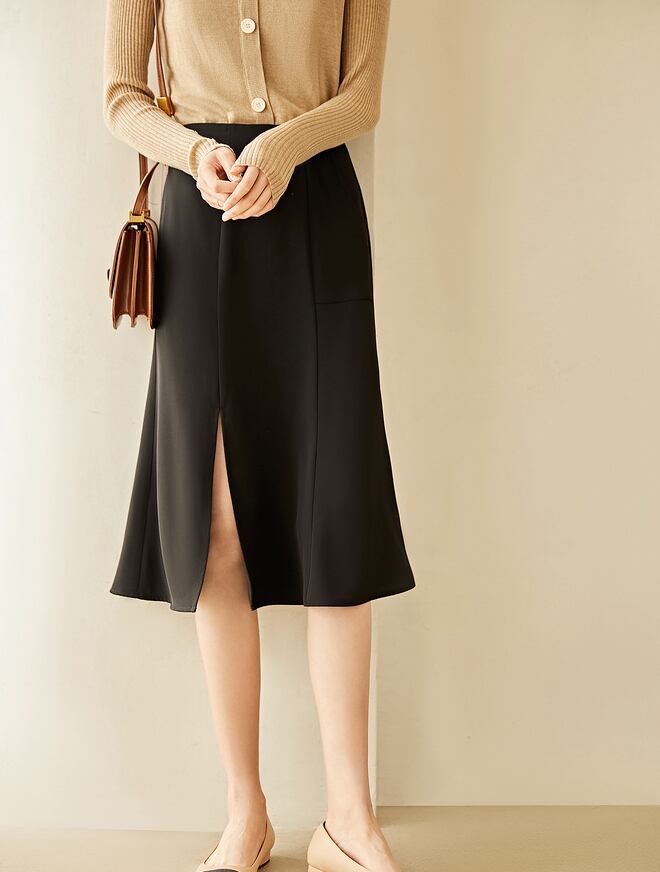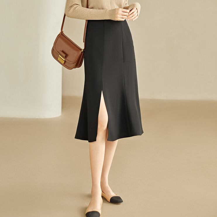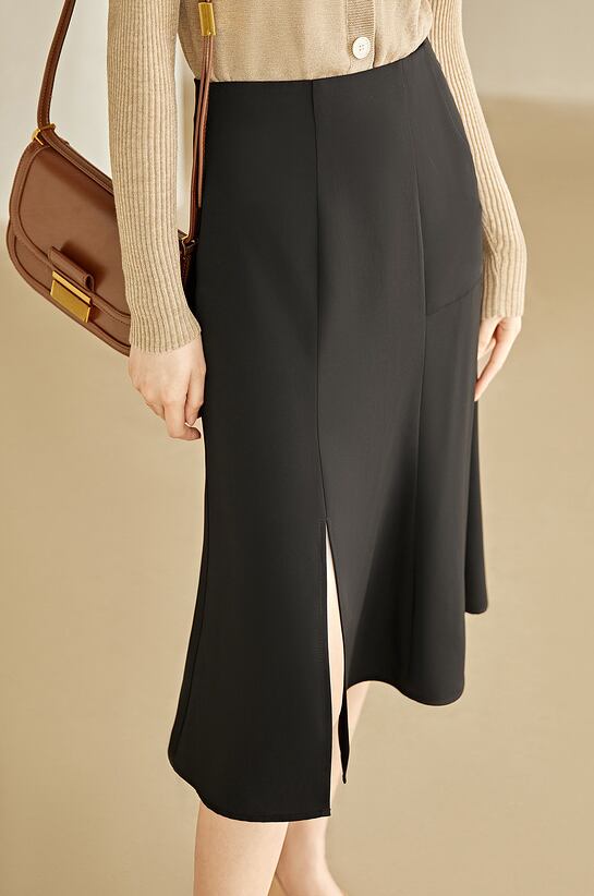 大胆にスリットを入れたタイトラインのスカート。