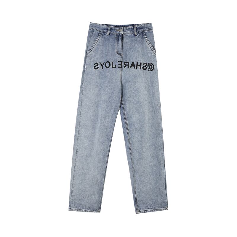 ロゴプリントデニムパンツ ボトムス パンツ デニムパンツ ロング ロング丈 ストレート ハイウエスト デニム かわいい 大人可愛い きれいめ シンプル カジュアル 大人 上品 おしゃれ お洒落 大人可愛い 大人女子 こなれ感 ラフ メンズライク マニッシュ ボーイッシュ スポーティー ルーズ 個性的 クール モダン 主役級 存在感 とろみ感 無地 春 夏 秋 10代 20代 30代 レディース 学生 通学 デート お出かけ 女子会 休日 着回し 普段使い 韓国系 オルチャン