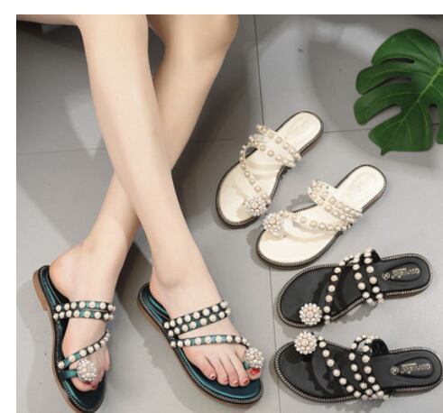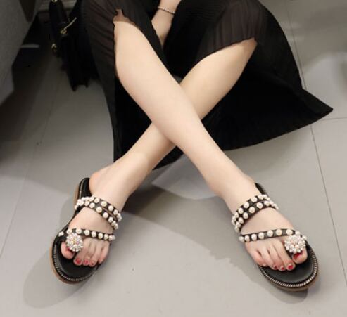 パールビジューがおしゃれなペタンコサンダルです。
