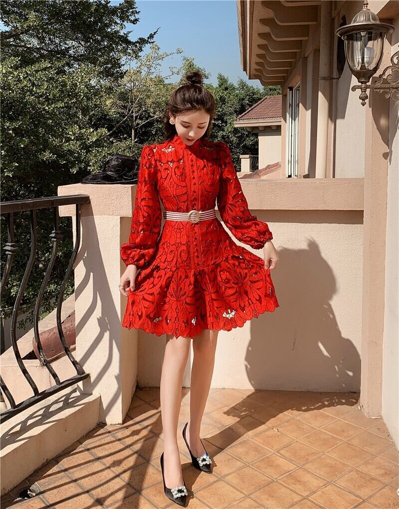 総レースワンピース ワンピース ワンピドレス ミニ ミニ丈 袖あり 長袖 ハイネック フレア Aライン レース ベルト ウエストマーク ハイウエスト 透け感 シースルー かわいい 大人可愛い きれいめ シンプル カジュアル 大人 上品 おしゃれ お洒落 大人可愛い 大人女子 こなれ感 ラフ キュート ガーリー モダン 主役級 存在感 とろみ感 柄 春 秋 10代 20代 30代 レディース デート お出かけ 女子会 休日 パーティー イベント 着回し 普段使い 重ね着 サイズ S M L XL 色展開 赤