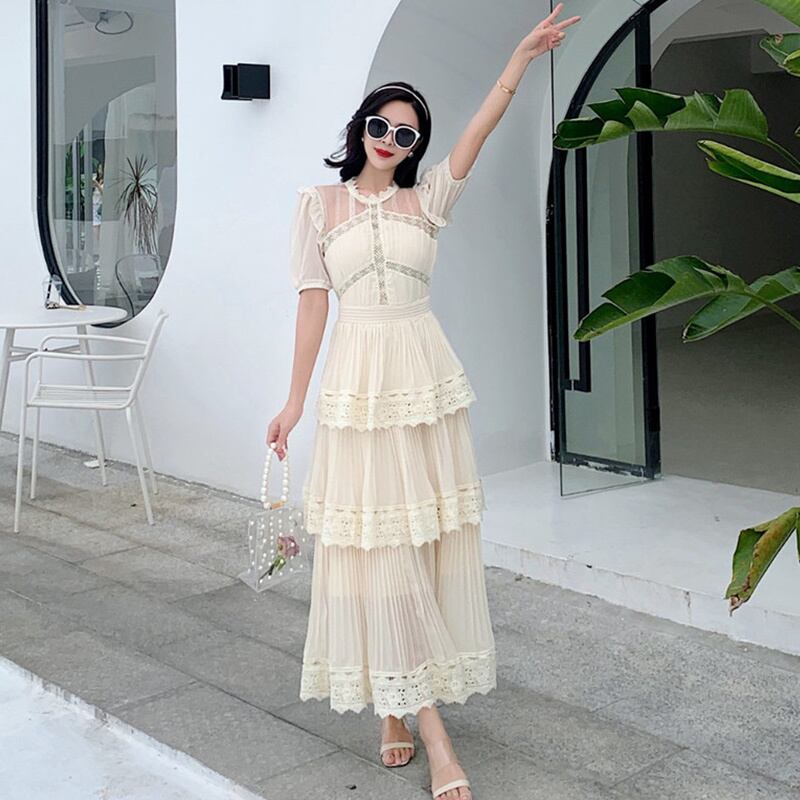 総レースワンピース ワンピース フレアワンピース ワンピドレス ロング ロング丈 袖あり 半袖 パフスリーブ ハイネック フレア Aライン プリーツ レース フリル ハイウエスト 透け感 シースルー かわいい 大人可愛い きれいめ シンプル カジュアル 大人 上品 おしゃれ お洒落 大人可愛い 大人女子 こなれ感 ラフ キュート ガーリー モダン 主役級 存在感 とろみ感 無地 春 夏 10代 20代 30代 レディース デート お出かけ 女子会 休日 パーティー イベント 着回し 普段使い 重ね着