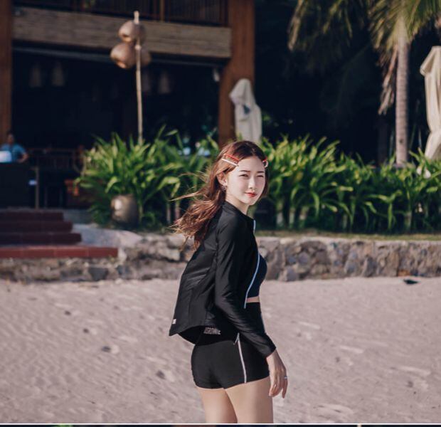 スポーツタイプビキニ上下+ラッシュガードのセット。