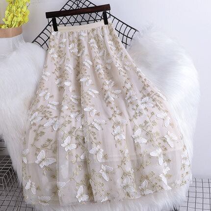 チュールスカート スカート ボトムス ロングスカート フレア Aライン 刺繍 チュール ハイウエスト かわいい 大人可愛い きれいめ シンプル カジュアル 大人 上品 おしゃれ お洒落 大人可愛い 大人女子 こなれ感 ラフ キュート ガーリー 個性的 モダン 主役級 存在感 とろみ感 柄 春 夏 秋 10代 20代 30代 レディース 学生 通学 デート お出かけ 女子会 休日 着回し 普段使い 韓国系 オルチャン 色展開 黒 ブラック 灰色 グレー アプリコット