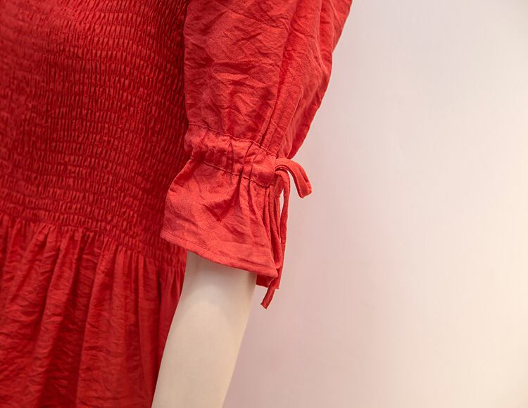 動きに合わせたしなやかな揺れ感が楽しめるパフスリーブ半袖ワンピース。