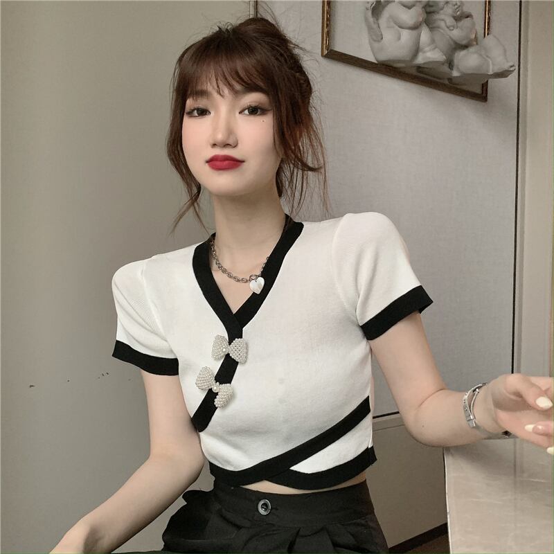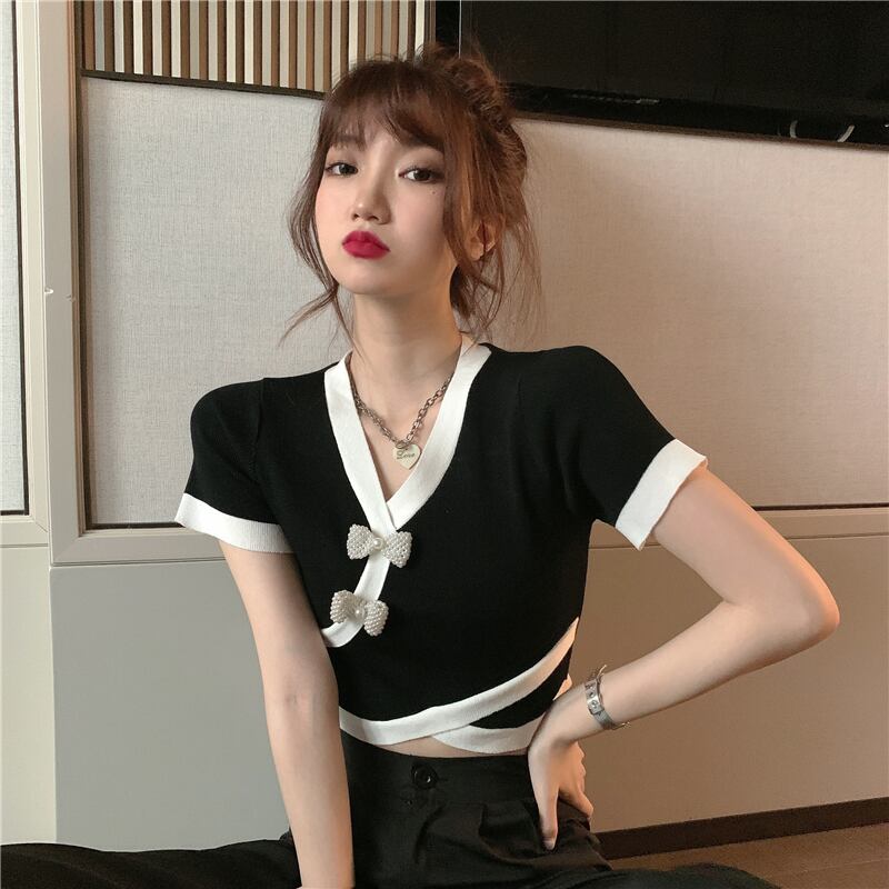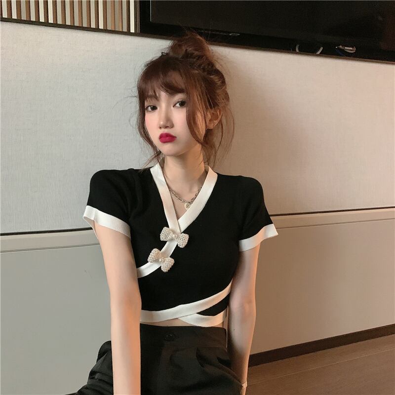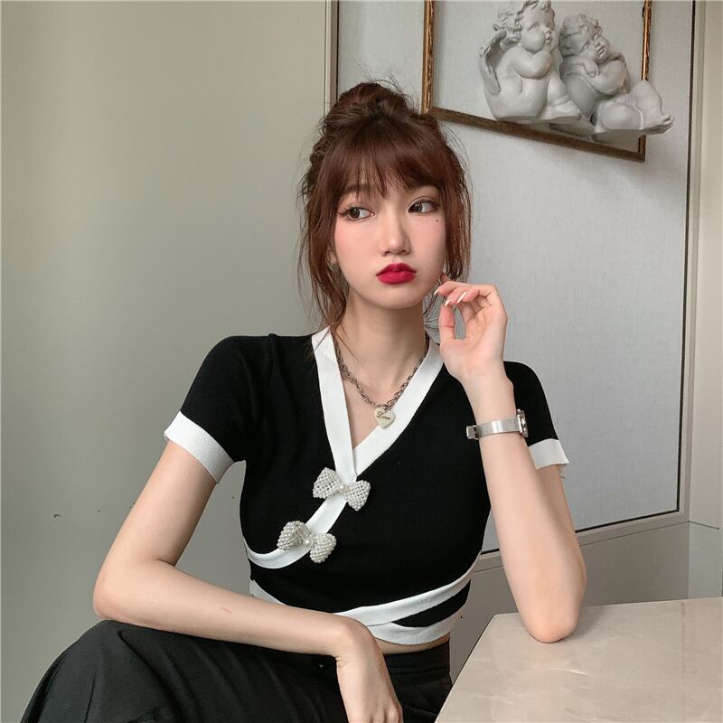 カシュクール半袖ニット トップス ニットソー セーター ショート ショート丈 袖あり 半袖 Vネック カシュクール リボン かわいい 大人可愛い きれいめ シンプル カジュアル 大人 上品 おしゃれ お洒落 大人可愛い 大人女子 こなれ感 ラフ キュート ガーリー 個性的 モダン 主役級 存在感 とろみ感 無地 春 夏 10代 20代 30代 レディース 学生 通学 デート お出かけ 女子会 休日 着回し 普段使い 重ね着 韓国系 オルチャン 色展開 白 ホワイト 黒 ブラック バイカラー