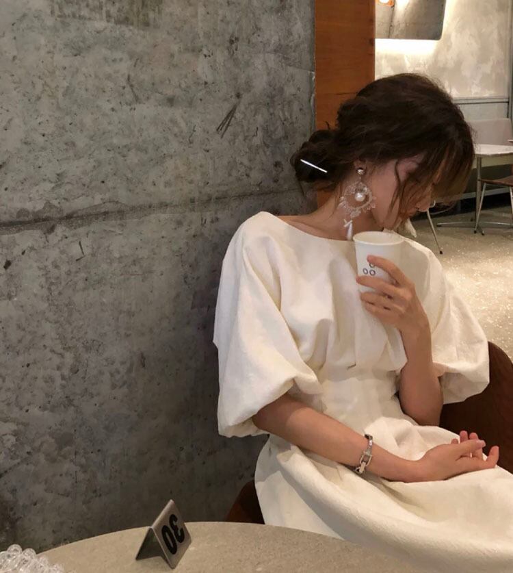 ボリューム感のあるパフスリーブが気になる二の腕ラインをさりげなくカバーしてくれ、1枚で洗練された雰囲気が完成するアイテムです。