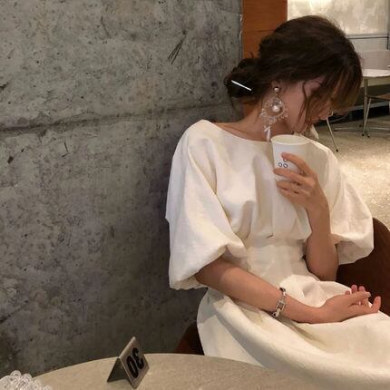 半袖ワンピース ワンピース フレアワンピース 膝丈 ひざ丈 袖あり 半袖 パフスリーブ ラウンドネック フレア ウエストマーク ハイウエスト かわいい 大人可愛い きれいめ シンプル カジュアル 大人 上品 おしゃれ お洒落 大人可愛い 大人女子 こなれ感 ラフ ラブリー キュート ガーリー 個性的 モダン 主役級 存在感 無地 春 夏 10代 20代 30代 レディース OL 通勤 学生 通学 デート お出かけ 女子会 休日 着回し 普段使い 重ね着 サイズ S M L 色展開 白 ホワイト