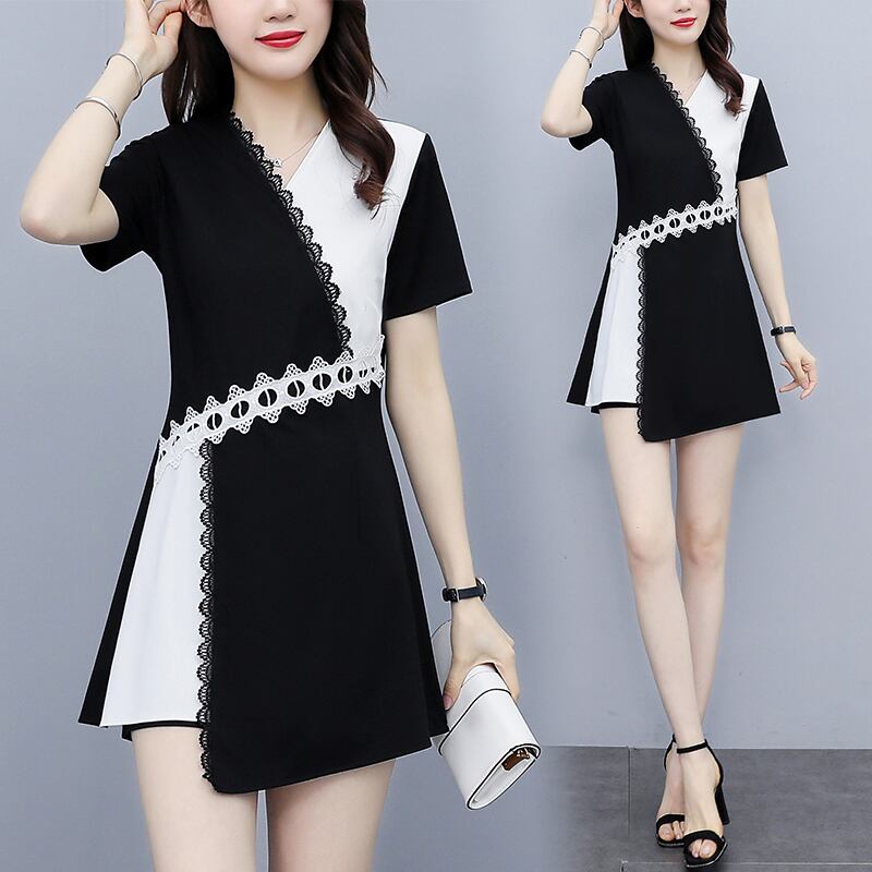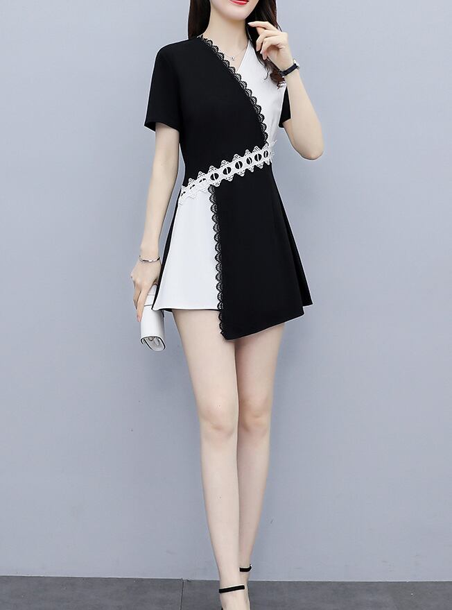 アシンメトリーデザインワンピース ワンピース フレアワンピース ワンピドレス ミニ ミニ丈 袖あり 半袖 Vネック フレア アシンメトリー レース ハイウエスト かわいい 大人可愛い きれいめ シンプル カジュアル 大人 上品 おしゃれ お洒落 大人可愛い 大人女子 こなれ感 ラフ ラブリー キュート ガーリー 個性的 モダン 主役級 存在感 無地 春 夏 10代 20代 30代 レディース 学生 通学 デート お出かけ 女子会 休日 パーティー イベント 着回し 普段使い 重ね着 韓国系 オルチャン