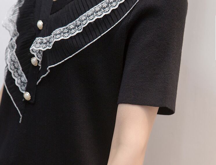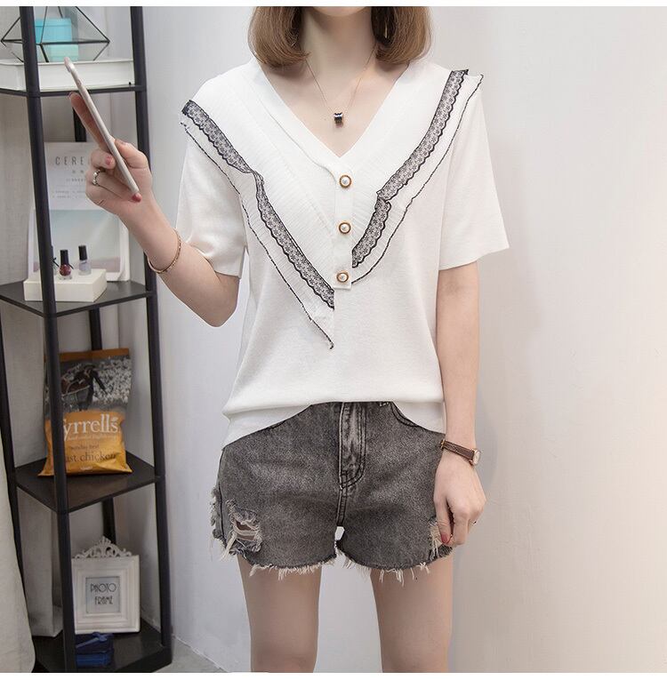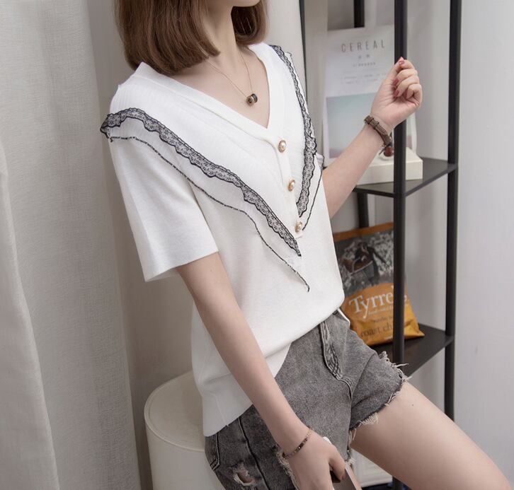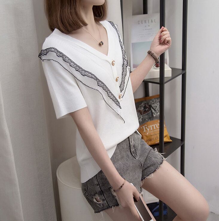半袖ニット トップス ニットソー セーター 袖あり 半袖 Vネック レース フリル かわいい 大人可愛い きれいめ シンプル カジュアル 大人 上品 おしゃれ お洒落 大人可愛い 大人女子 こなれ感 ラフ ラブリー キュート ガーリー 個性的 モダン 主役級 存在感 無地 春 夏 秋 10代 20代 30代 レディース OL 通勤 学生 通学 デート お出かけ 女子会 休日 着回し 普段使い 重ね着 韓国系 オルチャン サイズ XL 2XL 3XL 4XL 色展開 白 ホワイト