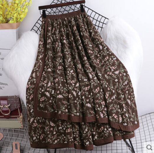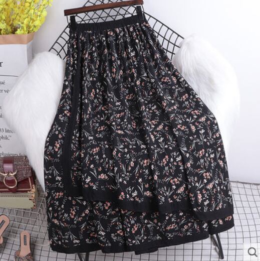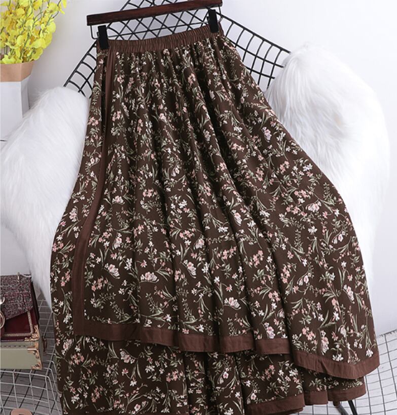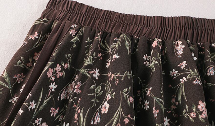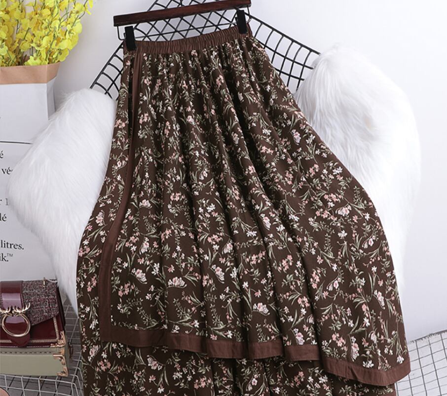 スカート ロングスカート ミモレ丈 ロング丈 フレア Aライン 切り替えデザイン ハイウエスト ウエストゴム かわいい きれいめ カジュアル おしゃれ お洒落 レトロ 大人可愛い 大人女子 ガーリー 花柄 小花柄 フラワー 春 夏 秋 10代 20代 30代 40代 レディース 女性用 ママ デート お出かけ 女子会 休日 着回し 普段使い 楽ちん モテ 体型カバー フリーサイズ 黒 ブラック 茶色 ブラウン