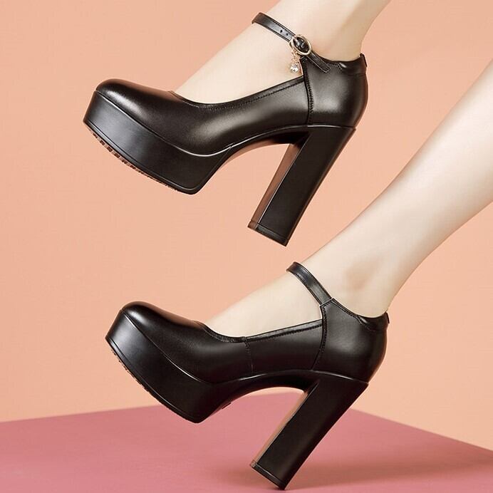 アンクルストラップ付で、履きずれしにくいパンプスです。チャームがワンポイントで、上品でエレガントな雰囲気を演出します。11cmのハイヒールですが、太いヒールで安定感があり脚を綺麗に見せてくれますよ。