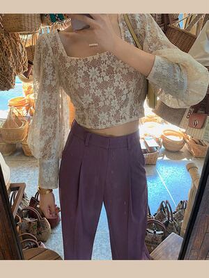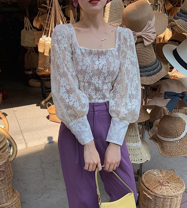 レースブラウス トップス ブラウス ショート ショート丈 袖あり 長袖 スクエアネック レース 透け感 かわいい 大人可愛い きれいめ シンプル カジュアル 大人 上品 おしゃれ お洒落 大人可愛い 大人女子 こなれ感 ラフ ラブリー キュート ガーリー 個性的 モダン 主役級 存在感 柄 ストライプ 春 秋 10代 20代 30代 レディース OL 通勤 学生 通学 デート お出かけ 女子会 休日 着回し 普段使い 重ね着 韓国系 オルチャン サイズ XS S M L 色展開 白