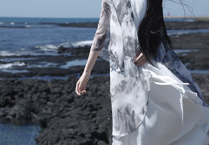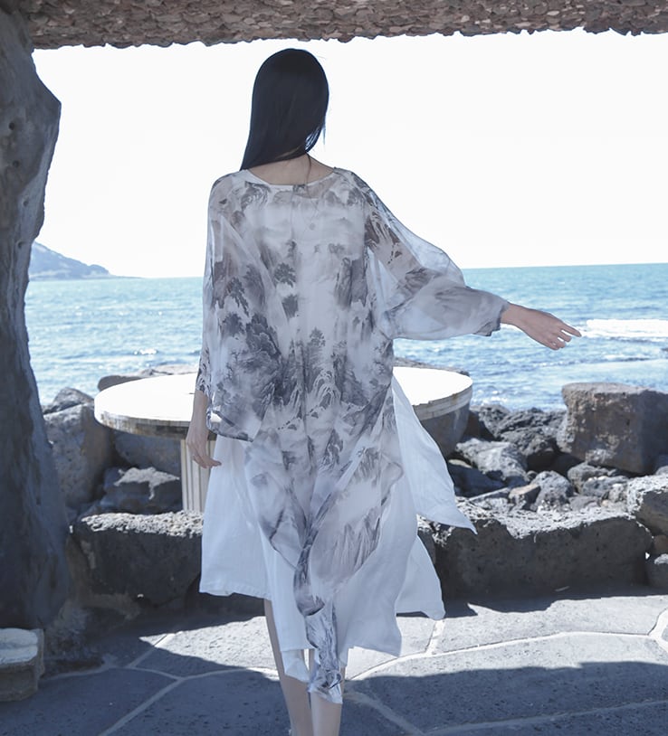 透け感のあるさらりとした薄手の生地感のロングカーディガン。