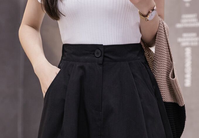 ウエストのワンタックで自然なボリュームと膨らみを見せるフレアスカート。