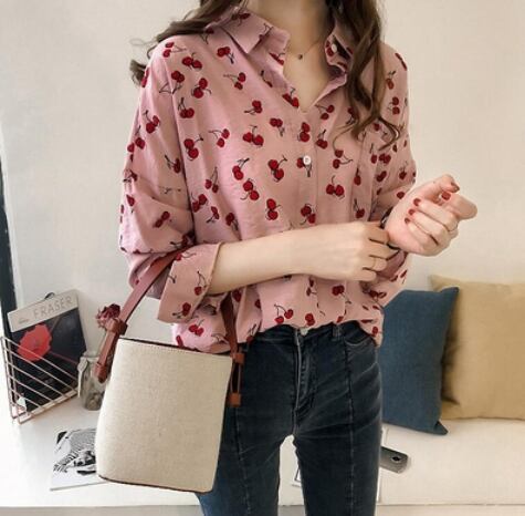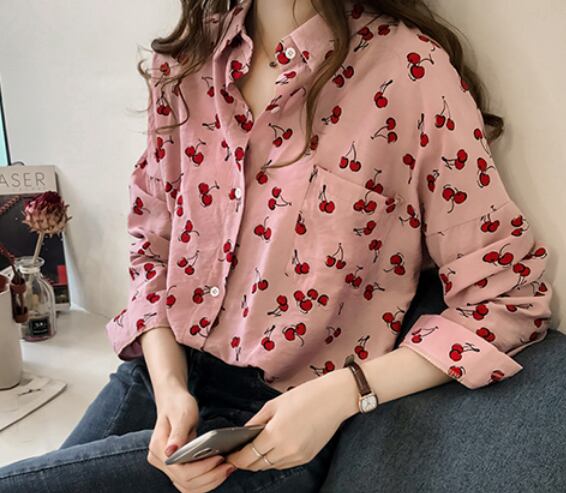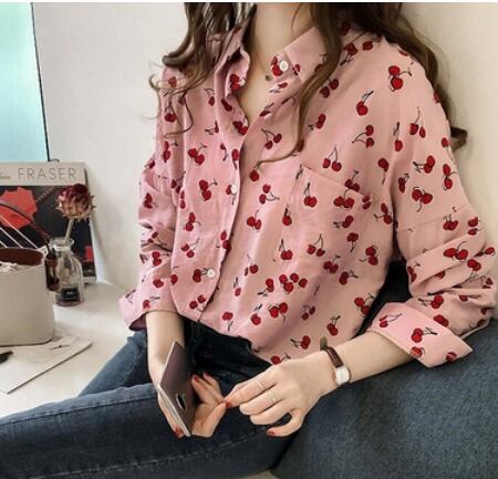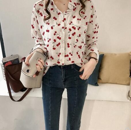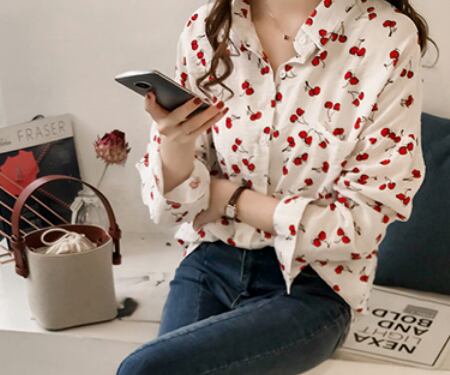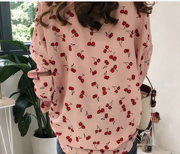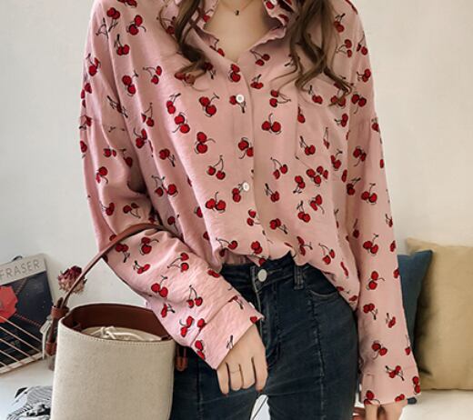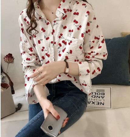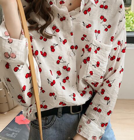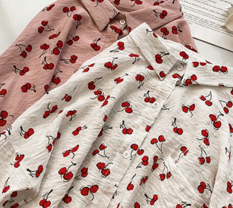 サクランボ柄入り長袖ブラウス トップス ブラウス ショート丈 長袖 ストレート 綿 爽やか 大人スタイル かわいい 大人可愛い きれいめ シンプル カジュアル 大人 上品 おしゃれ かっこいい 大人可愛い 大人女子 ラブリー キュート ガーリー 個性的 存在感 無地 春 夏 秋 オールシーズン シーズンレス 10代 20代 30代 40代 50代 レディース ママ 女の子 通勤 学生 通学 デート お出かけ 公園デビュー お泊まり 休日 着回し コーデ スタイル モテ M