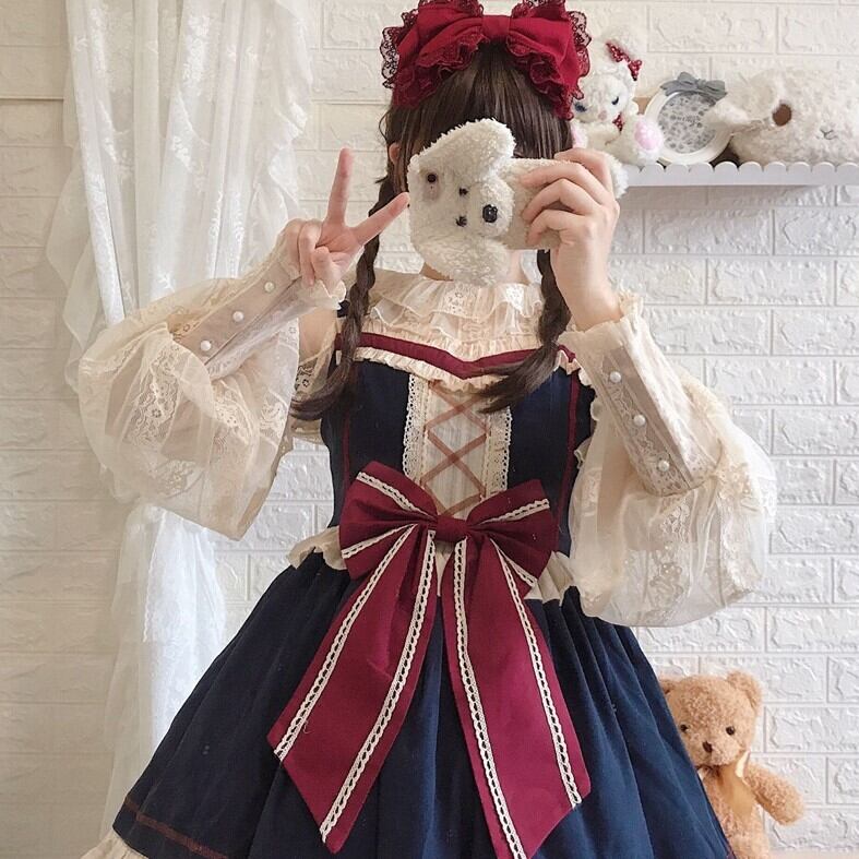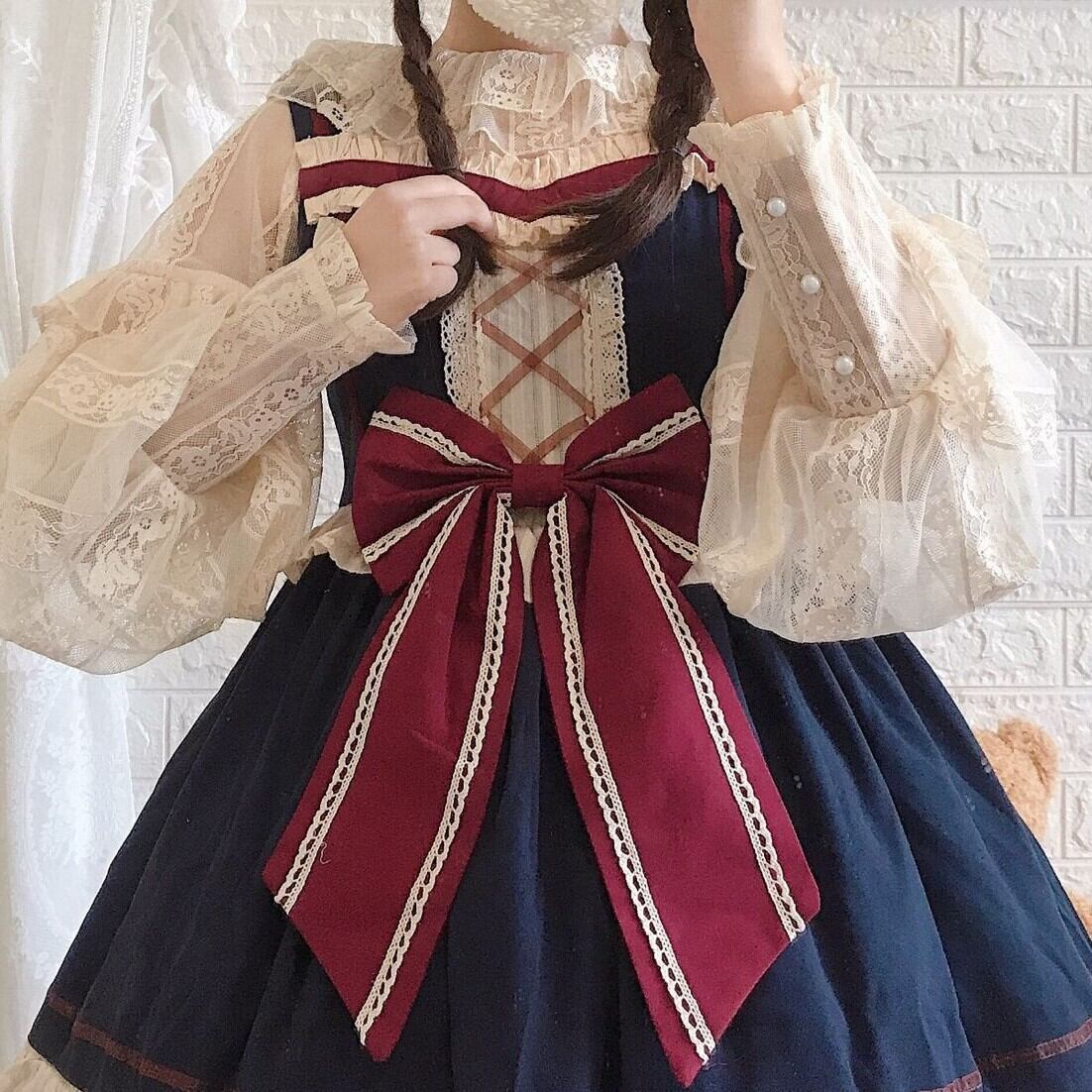 白雪姫をコンセプトにした、ロリータファッションです。ふんわりと広がる裾、大きなリボンがポイント。バイカラーでパキっと分れたデザインもキュートです。インナーブラウスとセットで、即コーデが完成します。