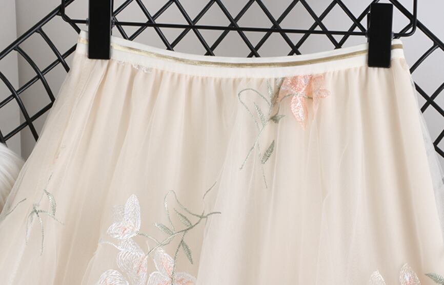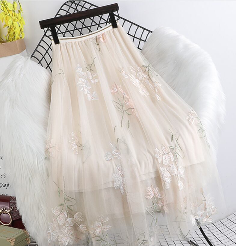 透け感のあるチュール生地×花柄刺繍が可愛いロングスカート。