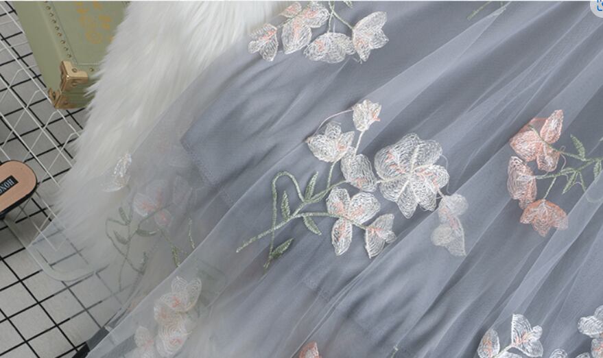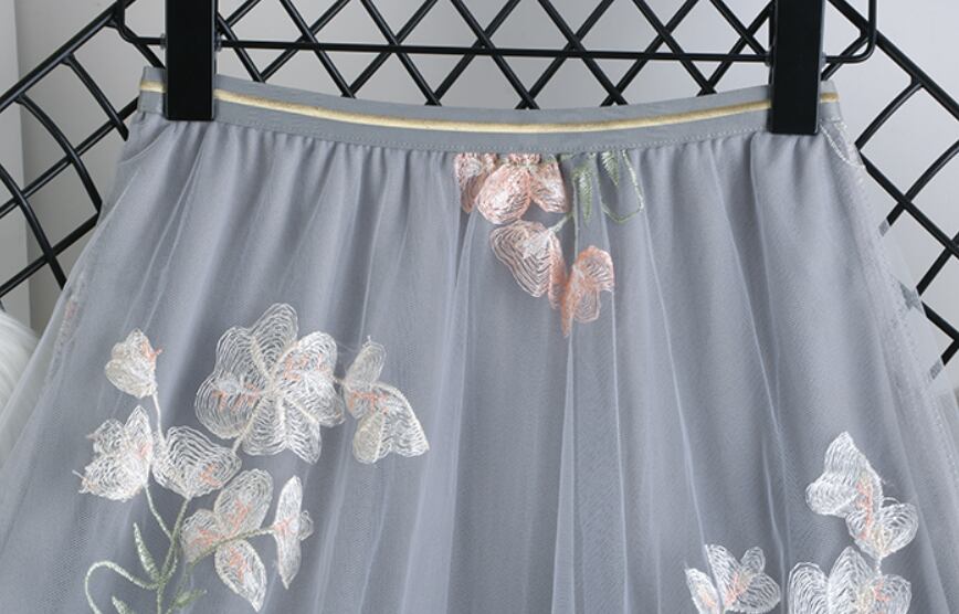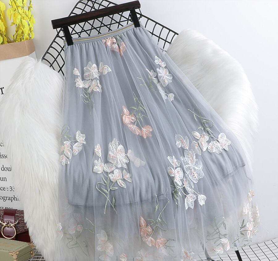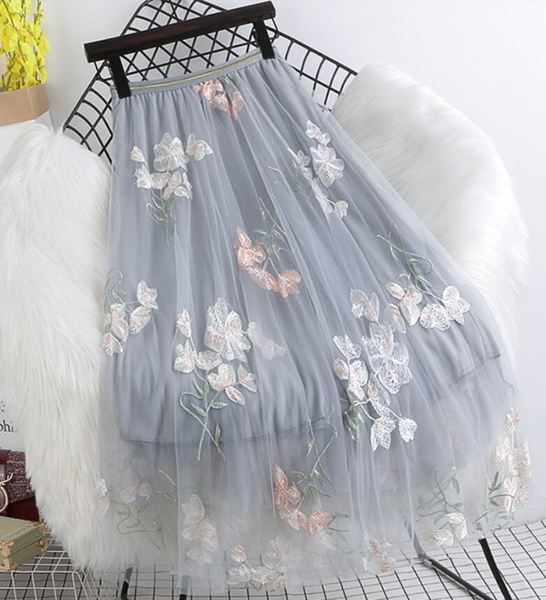 スカート ロングスカート ミモレ丈 ロング丈 Aライン 刺繍 チュール かわいい きれいめ カジュアル 上品 おしゃれ お洒落 大人可愛い 大人女子 こなれ感 ガーリー エレガント 存在感 無地 花柄 春 夏 10代 20代 30代 40代 レディース 女性用 ママ 女の子 デート お出かけ 女子会 着回し 普段使い 楽ちん モテ 体型カバー 脚長 フリーサイズ 灰色 グレー アプリコット