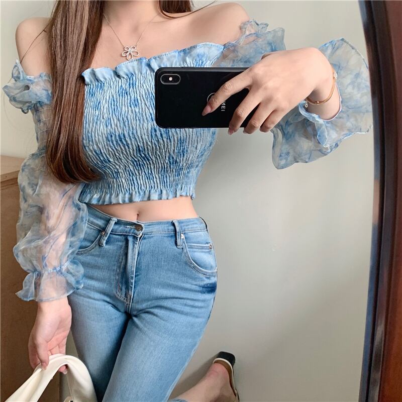 オフショルブラウス トップス ブラウス ショート ショート丈 袖あり 長袖 オフショルダー オフショル チュール 透け感 シースルー かわいい 大人可愛い きれいめ シンプル カジュアル 大人 上品 おしゃれ お洒落 大人可愛い 大人女子 こなれ感 ラフ ラブリー キュート ガーリー モダン 主役級 存在感 柄 花柄 春 夏 秋 10代 20代 30代 レディース 学生 通学 デート お出かけ 女子会 休日 着回し 普段使い 重ね着 韓国系 オルチャン 色展開 青 ブルー