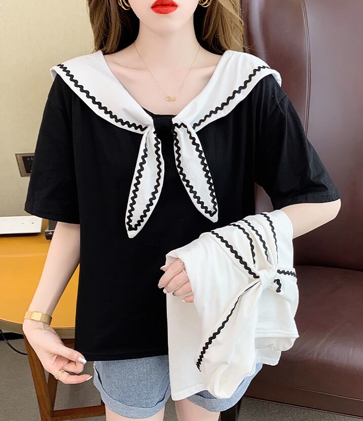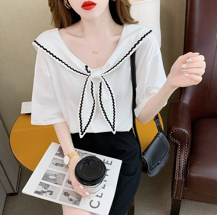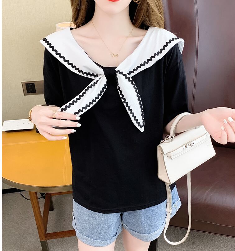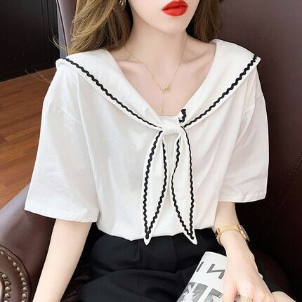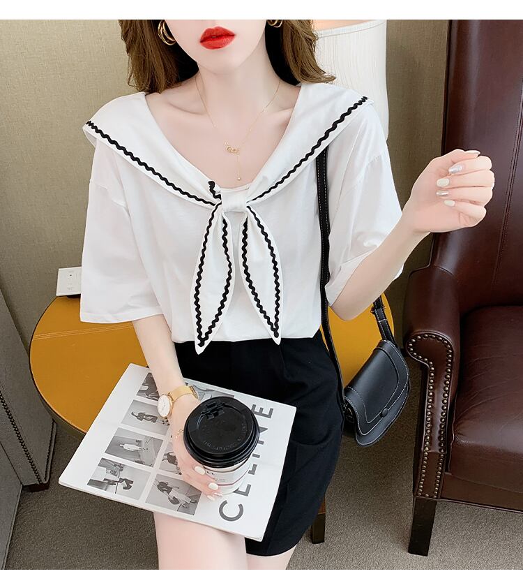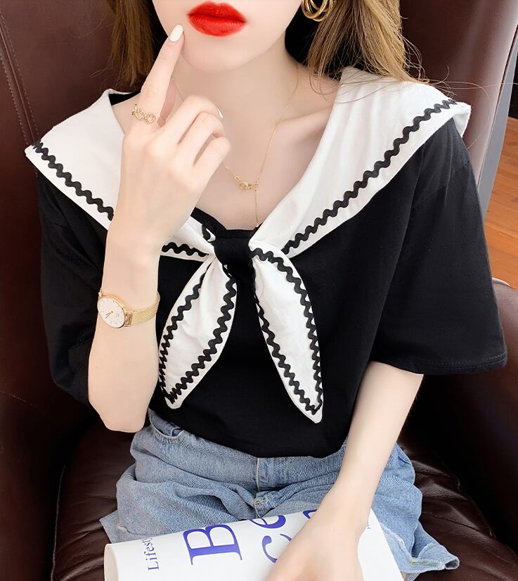 セーラーカラーTシャツ トップス Tシャツ カットソー 袖あり 半袖 ラウンドネック 襟付き かわいい 大人可愛い きれいめ シンプル カジュアル 大人 上品 おしゃれ お洒落 大人可愛い 大人女子 こなれ感 ラフ ラブリー キュート ガーリー モダン 主役級 存在感 無地 春 夏 秋 10代 20代 30代 レディース 学生 通学 デート お出かけ 女子会 休日 着回し 普段使い 重ね着 韓国系 オルチャン サイズ S M L XL 色展開 白 ホワイト 黒 ブラック